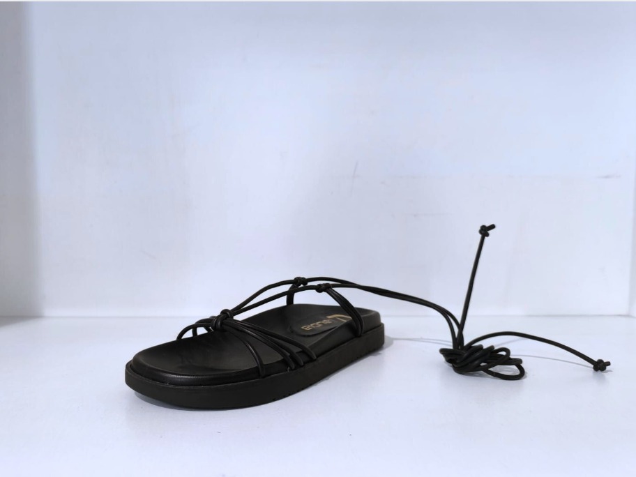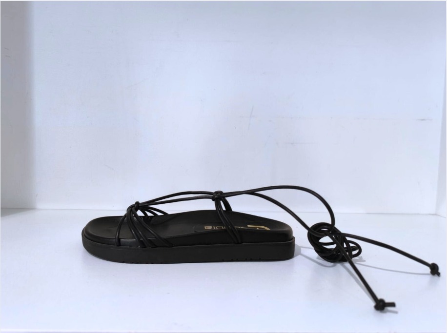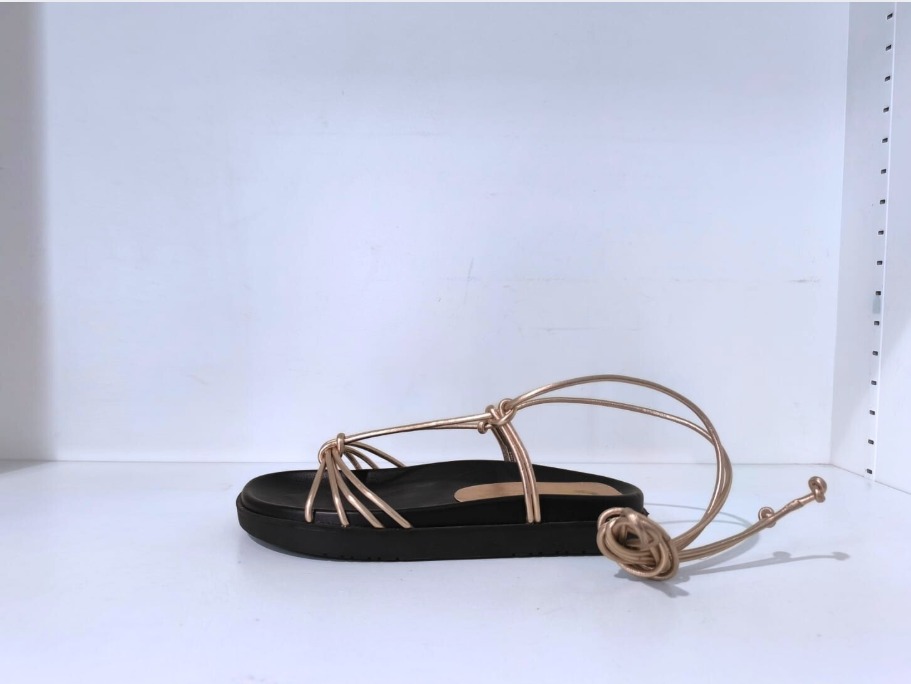 La sandalia plana estilo romano con cintas ofrece un equilibrio perfecto entre elegancia y comodidad. Disponible en color negro y con una versión en cordón dorado, este modelo resalta por su diseño de tiras finas que se entrelazan sobre el empeine y se ajustan al tobillo o la pierna para un toque sofisticado y veraniego. Su suela plana y acolchada proporciona confort durante todo el día, ideal para looks frescos y modernos.